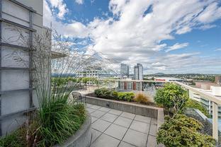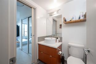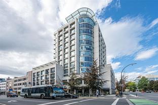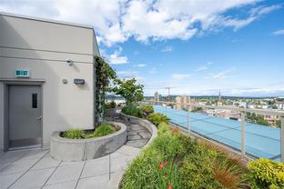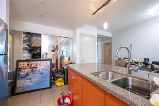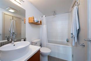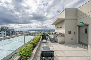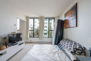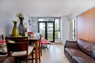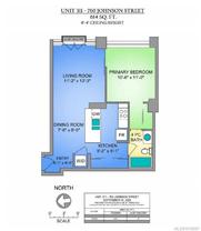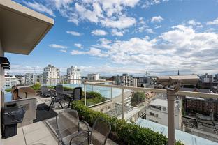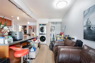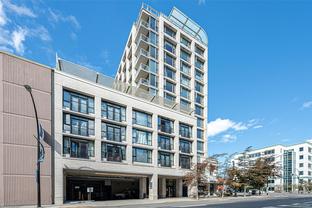 Modern 1-bedroom for sale in downtown Victoria! Located on the third floor of a contemporary building at the vibrant intersection of Johnson and Blanshard, this unit perfectly balances urban convenience with comfortable living. The thoughtfully designed layout features a bright living room, a functional kitchen, a spacious bedroom, a full bathroom, and an in-unit laundry closet equipped with a washer and dryer. French doors from the living room open to a charming Juliet balcony that faces north across Blanshard, allowing for plenty of natural light and lovely city views. Enjoy secure underground parking, as well as access to the building's stunning rooftop patio, complete with a BBQ and offering panoramic views of the city skyline, ocean, and mountains. Situated on a corner lot next to a public parkade, this building is just steps away from top restaurants, boutique shops, two movie theaters, and everything downtown Victoria has to offer—experience downtown living at its best!
