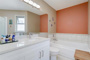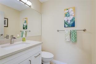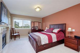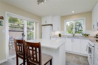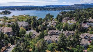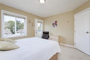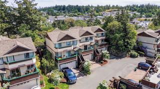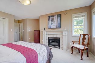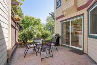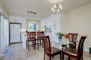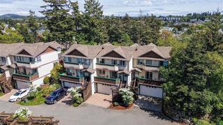 Welcome to Aldersmith Woods—a hidden gem in View Royal just steps from shops, the Galloping Goose Trail, and minutes to CFB Esquimalt. This immaculate townhome offers a flexible layout with 3–4 bedrooms, 3 bathrooms, and nearly 2,000 sq ft of thoughtfully updated living. The kitchen is a standout with Caesarstone counters, soft-close IKEA cabinetry to the ceiling, and a walkout to a private patio backing onto green space. Solid oak floors and a Valor H3 gas fireplace warm the living room, while custom Ruffell & Brown blinds add style throughout. Retreat upstairs to a grand primary suite with ensuite and fireplace, plus new carpet throughout the upper and lower floors. Bathrooms boast maple cabinetry with quartz counters and efficient Cadet toilets. Bask in all-day sun, with two decks offering mountain views and ocean glimpses. Friendly, stable strata with a new roof (2023). Quality, comfort, and location—this one has it all!