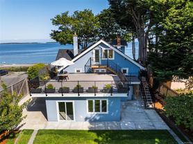 Welcome to The Esplanade – Victoria’s most beloved beachfront community. Tucked along the quiet, tree-lined side of sandy Willows Beach, this charming, fully renovated character home sits on an expansive 11,500+ sq ft lot. The primary residence offers 3 Bedrooms, 1 Bathroom, a custom kitchen with handcrafted rift-cut oak cabinetry, Sub-Zero appliances, in-line dining and a cozy home office with breathtaking 180° ocean views. Upstairs, the dramatic 1 Bedroom loft suite features soaring 8' skylights, panoramic views and a 650 sq ft rooftop patio made for sunsets. The walk-out basement includes 2 access points and provides room to expand or create two additional 1 Bedroom suites. The versatile floorplan makes this an ideal multi-generational living opportunity. A private backyard filled with mature fruit trees and two separate driveways opens the door to future development. Rarely do homes come up for sale in this magical seaside setting on Willows Beach.