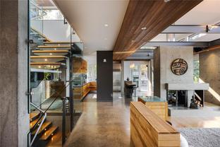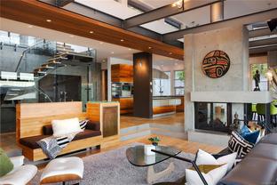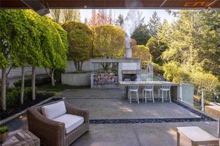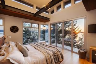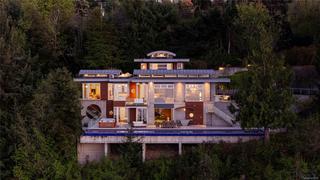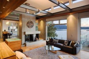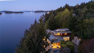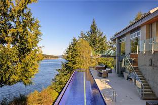 Oceanfront Masterpiece. World class custom steel-&-concrete home on 1.59 private acres with 625' of ocean frontage. Panoramic ocean & island views are enjoyed through floor-to-ceiling windows & signature porthole accents. A bespoke flybridge extends from the living area, delivering front-row seats to an 82' infinity pool perfectly aligned for sunrises over Mt Baker to glowing ocean sunsets. Inside, sustainable geothermal heating warms polished concrete floors. Rich hues are provided by accent floors, floating stairs & custom cabinetry. A deluxe main-floor primary retreat has sweeping vistas with a spa-inspired ensuite. Lower level features guest suites, media room, wine cellar & poolside gym w/ retractable glass doors for seamless outdoor access. Upstairs, the family room is a quiet escape. The gourmet kitchen opens to an outdoor BBQ area w/ man-made stream & waterfall for natural ambiance. A private, peaceful seaside sanctuary near to shops, dining & marinas.