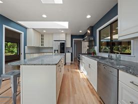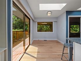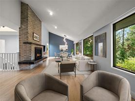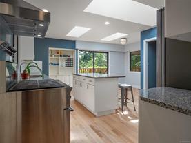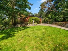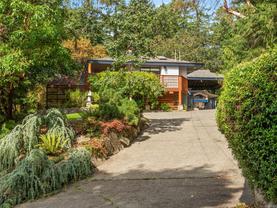 Experience coastal living in the coveted Queenswood area on a rare 21743 sqft property just moments from Cadboro Bay Village, the beach & UVic. This inviting 2-level home blends 1970s character with modern comfort, offering sun-filled spaces throughout. The generous foyer leads to an airy living/dining area featuring soaring ceilings & an ambient fireplace. The bright white kitchen includes an eat-in island, granite counters, top-tier stainless appliances, pocket doors to the adjoining family room & access to the south-west facing covered deck with tranquil tree-top views. The sunroom is well suited for many uses. There are 2 bedrooms & a 5-pce bathroom also on the main level. Downstairs you'll find a separate entrance with a mudroom, the primary suite with wood burning riverstone fireplace, 2 additional bedrooms plus a 4-pce bathroom. An oversized carport, garage & workshop complete this versatile property in one of Victoria’s most desirable neighbourhoods.
