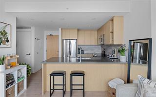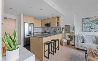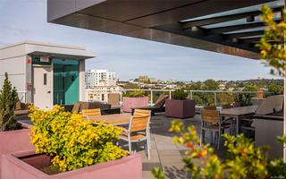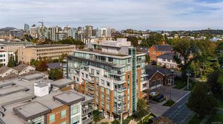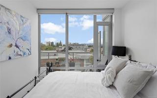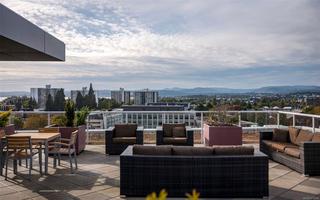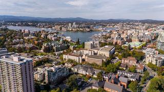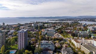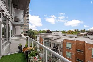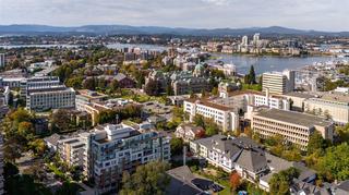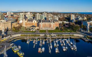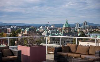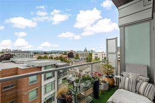 Experience the best of James Bay living in The Duet, an ideally situated and highly sought-after steel & concrete building.This sun-drenched 1 bedroom condo is situated primely on the west side of the building and boasts soaring windows that fill the space with natural light. Step out onto your covered 12x4 glass-panelled balcony, perfectly positioned with no neighbouring decks beside or above, to enjoy stunning, unobstructed sunsets, summer fireworks, and festive winter lights from the Parliament Buildings. On clear days, your views stretch all the way to Bear Mountain and south to the Olympic Mountains, making every moment here a showstopper from every spot in your living space. The chef-ready kitchen is a dream for cooking, featuring full-size appliances, charcoal grey quartz countertops, abundant cabinetry, and generous counter space. A newer GE washer and dryer are tucked conveniently in-suite. The spa-inspired bathroom includes a modern double glass shower with both rain and handheld heads, and radiant floor heating for a luxurious and cozy touch on gloomier days. Thoughtful design and high-end finishes elevate daily living, while the open layout and tall windows make every inch feel bright and expansive. The Duet offers an incredibly welcoming, pet-friendly community, complete with a live-in caretaker, rooftop terrace with BBQs with panoramic views (watch seaplanes coming in and water taxis commuting), lounge areas, secure underground parking with storage locker nearby, a dog wash station, and a meeting room for owners’ use. Just steps from Beacon Hill Park, Dallas Road, and James Bay Village, you’re minutes from downtown or the Inner Harbour, yet tucked in a peaceful, convenient corner of the neighbourhood.