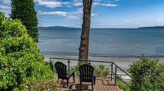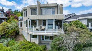 Situated on the tranquil shores of Parker Avenue in Cordova Bay, this remarkable 3,242 sq. ft. OCEANFRONT home captures breathtaking vistas of Mt. Baker, the Salish Sea, and nearby islands. Showcasing a California/West Coast-inspired design, the residence is filled with natural light through its expansive windows and skylights, illuminating the open-concept main floor with its spacious living and dining areas and a chef’s kitchen featuring granite countertops and built-in appliances. The entire top floor is dedicated to the primary suite, complete with a cozy fireplace, spa-like ensuite, and a private rooftop deck-an ideal retreat for relaxing while taking in the ocean breeze. The lower level offers two generous bedrooms and a flexible recreation room, well-suited for guests or family gatherings. Providing private beach access for kayaking and paddle boarding, this property is also just moments from Cordova Bay’s boutique shops, top-rated schools, convenient transit, and world-class golf. A perfect blend of privacy, luxury, and charm.