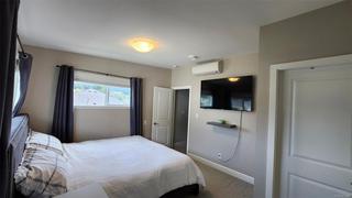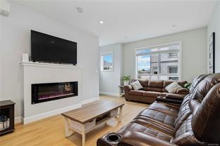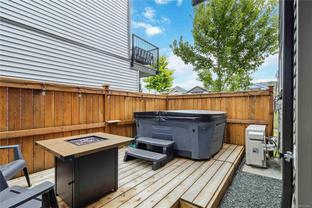 Corner unit, best location in the whole complex! Experience this beautifully designed townhome in the desirable Luxton Flats community. Offering 1,317 sq ft of thoughtfully laid-out space, this 3-bedroom, 3-bath home features an open-concept main floor with soaring 9-foot ceilings that enhance the sense of space and light. The contemporary kitchen is equipped with quartz countertops, a stylish tiled backsplash, gas range, and stainless steel appliances—perfect for both cooking enthusiasts and entertainers. Unwind by the sleek linear electric fireplace or step onto the private deck, complete with a natural gas BBQ hookup for easy outdoor dining. Upstairs, the spacious primary bedroom includes a modern ensuite with a walk-in shower. Additional highlights include a tandem garage, fully fenced yard with a hot tub, energy-efficient 2 heads ductless heat pump with A/C, and gas hot water system.