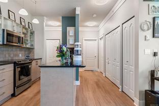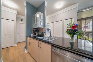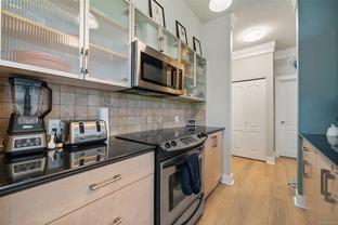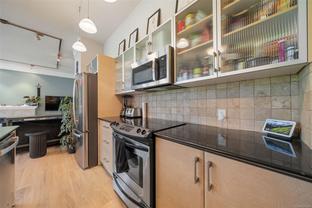 Discover this stylish and contemporary 2-bedroom, 2-bath suite at The Wave, offering exceptional value in the heart of Downtown. Expansive south-facing windows, rich hardwood flooring, sleek black granite counters, stainless steel appliances, and over-height ceilings highlight the modern design, while generous storage adds everyday convenience. With in suite laundry and storage locker this unit is tucked at the back of the building. The balcony overlooks a peaceful courtyard—yet just outside your door, you’ll find vibrant shopping, dining, cafés, and all the energy of city living. Whether you’re looking for your next home or a smart investment, this property is an excellent choice.