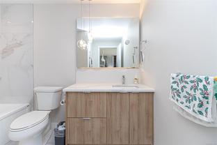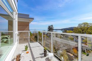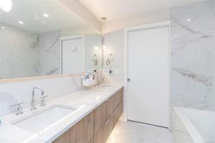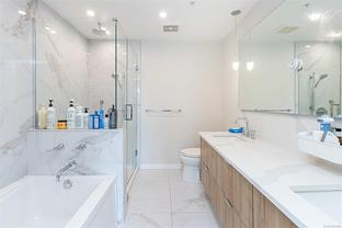 Located in one of Victoria’s most prestigious neighborhoods, Cordova Bay offers Seaside living at its finest. This TOP floor SOUTH facing unit with OCEAN VIEW. Nearly 1100 Sqft 2 bed/2 bath Features include 9 ft ceilings with floor to ceiling windows, Open concept kitchen with quartz counter tops with a large island great for entertaining, KitchenAid appliances, built-in full height pantry, LED lighting & soft close cabinets, engineered hardwood flooring, Master bedroom with walk-in closet, Separated Bedrooms for more privacy, full size Whirlpool W/D and Skylights making your home bright and sunny. After a day of golf, unwind in your spa inspired en-suite with a glass of wine, then relax & enjoy your BBQ. 1 secure underground parking spaces with Electric vehicle charging capability. Rental & Pets are allowed. The Haro is just steps to the beach. Live Life. Live Inspired.