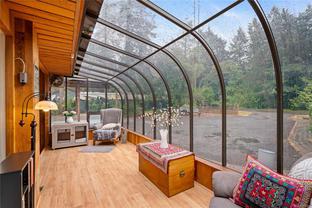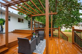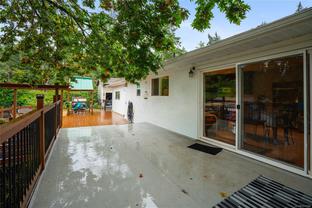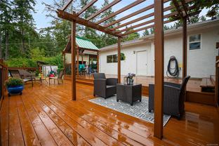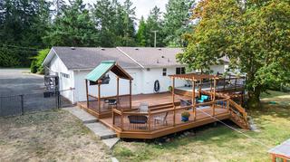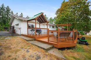 Welcome to this flexible 5-bedroom, 4-bath home offering exceptional functionality and comfort on just under an acre of beautifully landscaped, fully fenced grounds! The main level features a spacious, thoughtful layout with a welcoming entryway, generous living and dining areas, a bright sunroom, and three bedrooms, including a primary suite with an ensuite bath. Accessibility is a priority here, with a wheel-in shower, extra-wide doorways, and radiant in-floor heating throughout all tiled areas, including the kitchen and dining room. Step outside onto a large deck, perfect for entertaining or unwinding - with electrical wiring underneath, previously used for a hot tub. The lower level provides incredible versatility, boasting two additional bedrooms, a full bath, and a large living space with suite potential; ideal for extended family, guests, or additional income. Fresh carpeting and paint throughout give the home a clean, updated feel. Additional highlights include a single attached garage, a detached RV carport with a small workshop, two cozy fireplace inserts (on both levels), a heat pump for year-round comfort, and a 200-amp panel with sub-panels. Accessibility upgrades and a wheelchair ramp make this home especially suited for multigenerational living. Outside, enjoy mature fig and walnut trees, a charming gazebo, and private, well-maintained grounds. Located just a short walk from Coles Bay Regional Park and Ardmore Golf Course, with numerous nearby trails - this is truly a must-see property in an exceptional setting!