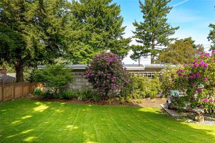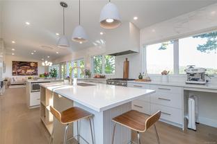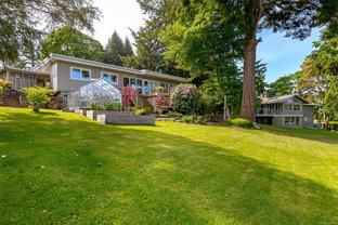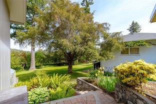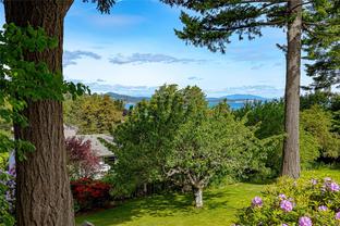 Welcome Home to Coastal Elegance – nestled on a beautiful (over 17,000sqft) lot! Step into this timelessly renovated home, designed by renowned Jenny Martin Design. Just mins from the beach, this gorgeous home provides for a single level living lifestyle with an open-concept layout that flows seamlessly onto a large deck overlooking your gorgeous yard & Views of Mt. Doug, the ocean down to Sidney & Cordova Bay. With a gourmet kitchen you'll be cooking all the time, high end appliances, ample cabinetry, large island & a wall of windows overlooking the lovely landscaped yard, ideal for garden enthusiasts or playing w/kids. Take in the morning sun on your large, private courtyard w/stunning Rhodos, wisteria & more. Downstairs, discover a versatile suite w/private access, offering potential for guests, extended family, or additional income. Don't miss this opportunity to make this home yours, and enjoy an all that this an amazing neighbourhood has to offer.