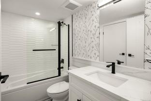 OPEN HOUSE Sun, Sept 28 2PM-4PM. Renovated from top to bottom, this beautifully updated 2-bedroom, 2-bathroom waterfront condo combines modern finishes with a bright, open layout that seamlessly connects the kitchen, dining, and living spaces—perfect for both everyday living and entertaining. Step out to the patio to enjoy ocean views, or retreat to the primary suite with its stylish ensuite, complete with an air-jetted tub. Recent upgrades include new appliances, quality finishes, and tasteful design choices that make the home feel fresh and inviting. The well-maintained building also offers excellent amenities, including an indoor pool, hot tub, sauna, and tennis court, along with option for secure underground parking space. Ideally located near the scenic Gorge Waterway, you’ll enjoy walking paths and green spaces while still being close to downtown Victoria, UVIC, Camosun, shops, dining, and entertainment. A perfect blend of modern living, convenience, and natural beauty.