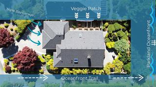 A rare opportunity to own in one of Sooke’s most coveted locations. This stunning 3,000 sq.ft. Whiffin Spit rancher with walk-out lower level and triple garage backs onto parkland with exceptional ocean views across the Strait of Juan de Fuca to the Olympic Mountains. Immaculately maintained, the 4 bedroom, 3 bath home with triple garage sits on a low-maintenance 0.25-acre lot, ideally placed to capture breathtaking views from the moment you enter. The oceanfront primary suite offers a spa-inspired ensuite and walk-in closet. The open-concept kitchen, dining, and living area share a 3-way fireplace and flow to a sun-filled deck perfect for seaside BBQs. The bright kitchen features white cabinetry and direct deck access. Downstairs, the walk-out level includes two bedrooms, full bath, and a spacious home entertainment room with billiards and patio access. Huge 3 bay garage. Generac automated generator. The narrow strip of oceanfront parkland at the rear with stairs to the beach where seals laze the day away on partially submerged rocks and Killer whales ply the local waters in search of salmon provides you with the ultimate west coast experience literally out your back door. An easy walk to renown Whiffin Spit with the adjacent renovated and revitalized Sooke Harbour House offering haute cuisine to tempt the palate. Moments to the Sooke core with shopping & area amenities all close by. Truly the complete oceanfront package!