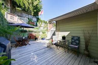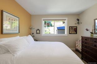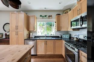 Just steps from Chemainus’ oceanfront Kin Beach & Park, this half-duplex is a turn-key coastal retreat. Offering approx. 1,250 sq ft of thoughtfully designed single-level living, the 2 bed/2bath layout is bright and welcoming, enhanced by a skylight in the main dining and living area. Bedrooms are positioned on opposite sides of the hallway for privacy, both generous in size - the second comfortably fitting a queen. The open-concept living space features 9’ ceilings, a cozy gas fireplace, and a kitchen highlighted by a custom butcher block island, under-cabinet lighting, and deep window sills perfect for plants. A functional laundry room with built-in cabinetry and additional storage for everyday convenience. Outdoors, this property truly shines. Step out to a large deck and patio that flow into a private, meticulously landscaped oasis. Tiered gardens rise against a high cement wall, creating incredible privacy and a sense of retreat while still being in the heart of town. Every detail has been considered: a recently updated irrigation system for ease of maintenance, lush greenery that changes with the seasons, and thoughtfully placed seating areas, including an upper terrace where ocean glimpses peek through. Whether hosting friends or enjoying a quiet evening surrounded by nature, this space feels like your own sanctuary. Adding to the appeal is the location itself. Nestled in the historic village core, you’re just a short stroll to the ferry, the local bakery, antique shops, theatre, and Chemainus’ vibrant arts and mural scene - with the beach and waterfront trails practically at your doorstep. With no strata fees (just shared annual insurance) and an attached garage plus long driveway, this is an easy-care, turnkey home that blends comfort, privacy, and coastal charm in one of Vancouver Island’s most beloved seaside communities.