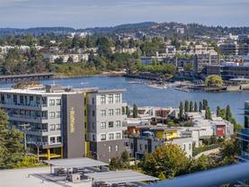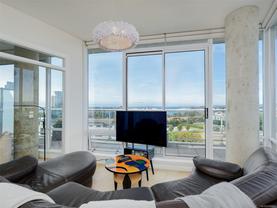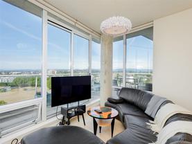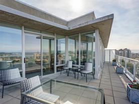 Locations like this don't come up often! Western Corner Penthouse unit in the Parc Residences is completely private, stunningly bright, quietly perched, and ever so conveniently located. With features often sought after, but rarely offered. 2 parking stalls (one with dedicated EV charger), dedicated heat pump, natural gas outlet on the massive wrap around deck. Views that have to be seen in person to truly appreciate: sunsets, ocean, panoramic city and mountain images you'll never tire of. Watch the planes take off and the cruise ships come in. Stay home for the fireworks! Host and entertain in near complete privacy. The Parc is well managed and proactive, plus located next to amenities galore. Groceries, restaurants, cafes, and pubs are all downstairs. Bike lanes and public dock means you can take the water path, bike path, or a quick 12 min walk to all downtown has to offer. Floor to (high) ceiling windows and a thoughtful layout with multiple living/work spaces. Come have a look!
