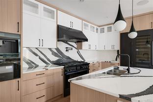 In the heart of South Oak Bay, this newly built 3,528 sq.ft. residence offers contemporary elegance on a landscaped 6,215 sq.ft. lot. Soaring windows, clean architectural lines, and seamless indoor-outdoor flow define this home’s design.The main floor centers around a stunning kitchen with marble surfaces, a large island, walk-in pantry, and custom wine display. Open dining and living areas with gas fireplace create an inviting atmosphere, complemented by a private office, laundry, and powder room. Direct access to a double garage and paved drive adds convenience.Upstairs, the primary suite features a spa-inspired 5-piece ensuite and walk-in closet, joined by two additional bedrooms, one with its own walk-in. The lower level provides a media room, family lounge, two bedrooms, two full baths, and ample storage.A fenced backyard with patio and manicured front garden offer tranquil outdoor living. Steps to excellent schools, shops, and Oak Bay Village, this home delivers modern luxury.