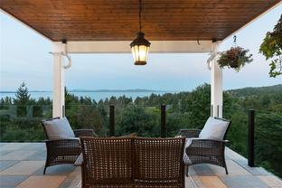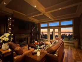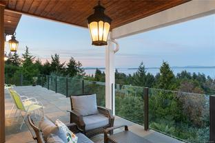 ONLY FOR SALE UNTIL OCT. 31st. 970 Seapearl is a custom 2008 luxury residence marrying architectural elegance, structural integrity, and West Coast nature. Over 4,000 sq ft, 4 beds/5 baths, cherrywood floors and 12' ceilings frame ocean-to-mountain panoramas: Haro Strait, Mt. Baker, Cordova Bay, Mt. Douglas, and the Olympics. Outdoor living tops 1,000 sq ft across dual decks with hot tub, plus a below-deck garden with a gentle river, pond, stone backdrop, and statue. The courtyard is four-season—outdoor kitchen, gas BBQ, wall fountain, irrigation, and dramatic lighting—backed by a whole-home generator. Inside: three fireplaces and a chef’s kitchen with a 9' granite island, gas cooktop, and double wall ovens; tunable lighting and pre-wiring for smart upgrades. The primary suite offers a view sitting area, dressing room, and spa ensuite. Minutes to beaches, trails, golf, and top schools on a quiet, non-through street of just 15 homes—this is a serene, engineered sanctuary.