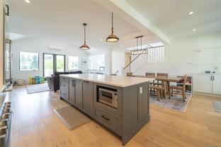 Perched at the quiet end of Wilkinson Rd and overlooking South Valley’s newer homes sits this 2021 Custom-Built 6 bed, 5 bath Modern Farmhouse with legal suite on a large, private, level lot with tons of parking! High-end features include a 3 Zone HVAC system, on-demand hot water, and Custom Hunter Douglas motorized blinds. The main level offers a cedar-vaulted entry, heated tile, hardwood floors, spacious office, open-concept living/dining areas with gas fireplace, and a spacious sunny patio. The kitchen wows w/11-ft quartz island, 6-burner gas stove w/pot filler, oversized fridge, wine rack, and custom cabinetry. The primary bedroom on the main floor impresses w/walk-in closet and deluxe spa-like ensuite! Upstairs has 3 more bedrooms; down features a large media/family room with wet bar. Includes a double garage plus a third bay for your sports car, motorbikes, or watercraft? Centrally located conveniently close to schools, transit, Vic General, and both Highways. Come have a look!