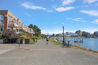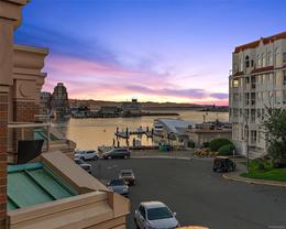 Welcome to Mariners Landing--combining stunning waterfront views with a prized location on the edge of Victoria’s downtown. This home delivers over 3,000 sf of living space, making it one of the largest and most exclusive townhomes in the city. A flexible 4-bed, 4-bath configuration offers expansive room sizes, three separate outdoor spaces, and breathtaking west-facing views of the Inner Harbour from the upper-level balcony. Other features include a large kitchen; hardwood flooring; three fireplaces; media room; oversized rec room for flexible living; private, secure 2-car garage, and fresh paint in designer colours. Steps from Boom & Batten restaurant, the new marina, and the scenic Songhees walkway, you’re also within easy walking distance to Victoria’s vibrant core. The building is pet-friendly and well-managed by a reliable strata — ideal for families, professionals, or those seeking a luxurious lock-and-leave lifestyle.