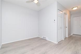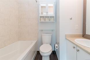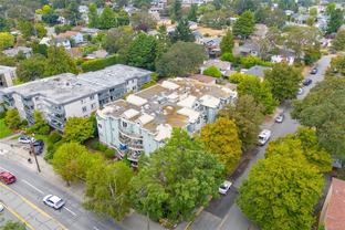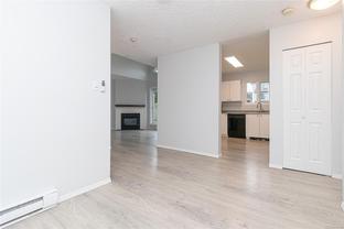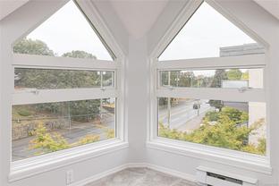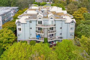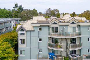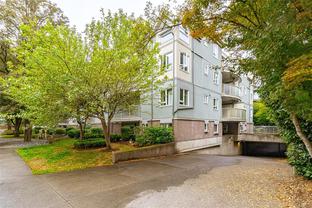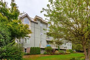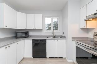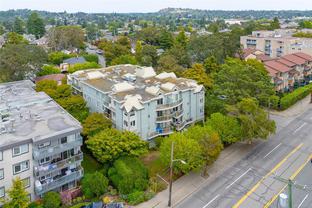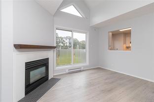 Welcome to this bright, freshly painted and airy top-floor, south-facing corner unit with amazing 14' vaulted ceilings and skylights that fill the space with natural light. You'll love the spacious kitchen with a handy pass-thru to the dining room, a cozy gas fireplace (gas included in the strata fees), and stylish engineered hardwood floors. The west-facing balcony is perfect for soaking up the afternoon sun, and there's even in-suite laundry and a beautifully updated 4-piece ensuite (redone in 2017). This unit comes with secure underground parking, a separate storage locker, is pet-friendly, and has no age restrictions. The building was fully remediated in 2015 with new balconies, windows, and a rainscreen exterior, so all the big stuff is already taken care of. Located in a super convenient spot near UVic, Camosun, shopping, and everything you need—this is a great place to call home. A fantastic value in a great location—don't wait on this one!