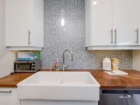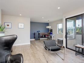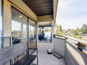 Welcome to #401, a beautifully renovated top-floor corner suite in a quiet, well-cared-for 10-unit building. This home feels fresh and modern with a soft colour palette and birch engineered hardwood floors. The living room is warm and inviting with a wood-burning fireplace and access to a west-facing balcony where you can enjoy evening sunsets. The kitchen offers bright white cabinets, wood-style counters, stainless appliances and a dining area surrounded by windows. The primary bedroom overlooks the nearby park and includes a walk-in closet with organizers. The bathroom has thoughtful tile details, in-floor heating, and natural light from a skylight. You’ll also find in-suite laundry, a tucked-away office nook, and secure parking. With natural light throughout and a location close to green space, this is a comfortable home to enjoy for years to come.