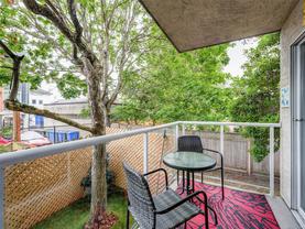 Spacious, Updated and Bright! Don't miss this South Facing 2-Bedroom (above ground) Corner unit Condo with a sun-drenched walk-out patio. Inside, you will find new laminate flooring, an updated 4-pc bathroom, spacious kitchen with stainless steel appliances & new counter-tops, 2 large bedrooms, and fresh paint throughout. Also, the large living room features a cozy gas fireplace, and a sliding glass door to the SW facing walk-out patio. And don't miss the large laundry room with newer washer, dryer and hot water tank. The location is fantastic, as you will find yourself in the heart of the downtown core, where entertainment & amenities are at your doorstep! Royal Athletic Park is across the street, Save-On-Foods Memorial Centre is 1 block east, and around the corner on Cook street find an abundance of restaurants and cafes. This condo is situated on the quiet side of this 12 unit well maintained building. The unit comes complete with in-suite laundry, secure parking, separate storage.