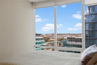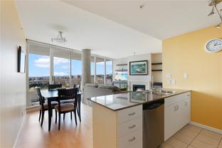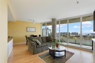 Location, Location, Location! Welcome to this bright and sunny 2 bedroom condo set in a superb location with all of the amenities at your fingertips, so you can leave your car at home!! With only one party wall, this corner unit is quiet and feels rather private with floor to ceiling windows, a large deck and sweeping views over the park towards the harbour and olympic mountains. With two spacious bedrooms with the primary complete with a generous walk in closet and ensuite. Not only does this building have an awesome location, and park-like setting, easy access to transit and bike routes to safely ride into downtown in minutes, it also has EV ready parking, a great fitness centre and lounge area with a pool table for entertaining your friends. Come by and check it out today!!