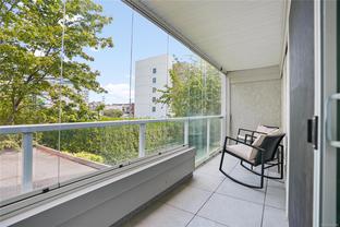 **OPEN HOUSE THIS SAT, OCT 25/ 3-4:30** GREAT VALUE FOR THIS LOCATION $ CORNER UNIT! Located Cook St Village, and the charm of Fairfield & Rockland! Near park and oceanside walks, this updated 2BD/2BA corner suite is ideally located for shopping and convenience. With nearly 1,000 sq ft of open living space, this home offers tile & nice flooring, newer appls, generous in-suite storage, master bedrrm ensuite bathrm & private updated tiled deck w/glass enclosure! Large windows fill the space with natural light, creating a warm and inviting atmosphere. Enjoy morning coffee or evening strolls with cafés & restaurants close by. Set in a well-managed building with lots of upgrades & amenities, including parking, separate common laundry, storage, a workshop, bike storage, and a meeting room. Monthly strata fee includes heat and hot water. Flexible move-in dates! Call this location home and explore the Victoria lifestyle.