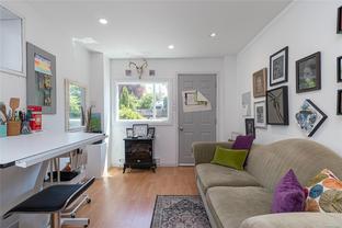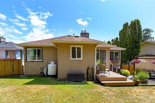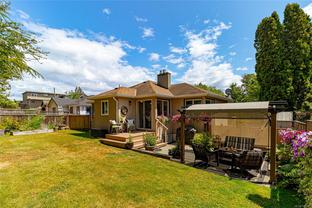 NEW PRICE - Timeless mid-century character blends beauty w modern updates in this 4 bedroom + 2 bathroom including bonus 1 or 2 bedroom suite. Updated eat in kitchen w newer cabinets, counters, flooring and modern backsplash. Sun-drenched living room is perfect for relaxing, complete w gas fireplace and expansive windows. Large primary easily accommodates a king bed and generous second bedroom complete the upstairs. The lower level offers flexibility with and separate dedicated office/art studio and a 1 bedroom suite complete with separate entrance and laundry (could turn into 2 bedroom for added revenue). Other features include - gleaming refinished wood floors, updated bathroom, vinyl windows, newer lighting, fresh designer color paint & plenty of parking including space for the RV. Enjoy mature landscaping & unwind in the fully fenced backyard —ideal space for kids, pets & avid gardeners. Centrally located within walking distance to the Cedar Hill Golf Course, walking trails, Galloping Goose & many amenities