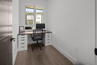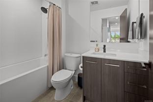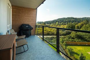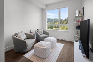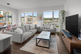 Large, 2 bed PLUS DEN / 2 bath corner unit with TWO PARKING SPOTS! The ideal layout with one bedroom & bath on either side of a bright, open concept living space. Built in 2024, the unit features premium details: quartz countertops, tiled backsplashes, 9ft ceilings and a full-height sidewall pantry. Modern touches include Energy Star appliances, LED lighting, Heat Pump/ AC, and open shelving “tech hub” for charging devices. The Reunion has top end common amenities - fitness centre, huge outdoor patio, bike storage, resident lounge, pet wash station and fully fenced dog park. One of the most convenient locations in the Westshore, just steps away from groceries, restaurants and coffee shops in Belmont Commons. Across the street is Westshore Town Centre Mall for shopping, with Westshore Cineplex and multiple recreation/ entertainment options also close by. This checks every box – location, design, home office, extra parking, pet friendly, additional storage, and great amenities.