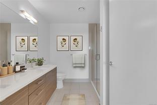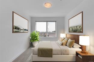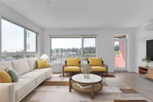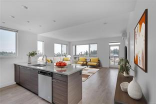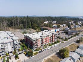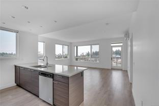 Pacific View delivers Westshore living at its best with this sun-soaked 2 bedroom, 2 bathroom corner suite showcasing distant ocean and mountain views from a large, covered south-facing deck. Inside, the airy open-concept layout is enhanced by soaring ceilings and massive windows, while the gourmet kitchen features wide quartz counters, stainless steel appliances and an extended eating bar made for entertaining. The spacious living area flows beautifully to the outdoor space, creating a true indoor-outdoor feel. A generous primary bedroom offers double closets and a spa-style ensuite with walk-in shower and double sinks, and the second bedroom is perfectly suited for guests or a home office. Complete with A/C, secure underground parking, storage locker and bike room, this pet-friendly and proactively managed building is quietly tucked away just minutes from Esquimalt Lagoon, Royal Roads University, the Galloping Goose Trail, recreation centres and an ever-growing array of local shops and cafés.