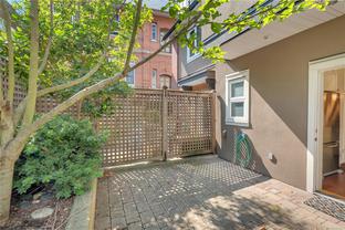 Directly across from Beacon Hill Park and set back from the street in a quiet corner of the complex, this 3-bed, 2.5-bath brownstone-style townhouse offers refined living across three levels. Featuring an open-concept main floor with gas fireplace, granite kitchen countertops and stainless steel appliances, plus seamless access to a private east-facing patio. The second level provides two generous bedrooms and a full bath, while the top floor is dedicated to a spacious primary retreat with walk-in closet and ensuite. Built in 2009 and exceptionally maintained, the home includes secure underground parking, storage and common EV charger. All within easy walking distance of the Inner Harbour, Parliament, restaurants, grocery stores, cafés and the Dallas Road waterfront.
