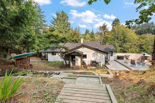 Welcome home to this beautifully updated property set on nearly a full acre! Tucked well back from the street and surrounded by mature trees, this home offers exceptional privacy and a serene setting. Inside, you’ll find 3 bedrooms upstairs plus a 1-bedroom suite downstairs, with updates from top to bottom. Recent improvements include a new roof, and new flooring and paint. The bright kitchen features stainless steel appliances, a convection oven, gorgeous backsplash, and new countertops, flowing seamlessly into a dining area bathed in natural light with access to the spacious deck. The living room is warm and inviting, complete with a new wood stove. Outdoors, enjoy an expansive deck perfect for entertaining, space for kids to explore, a greenhouse, beautiful Japanese maple trees, and room for sheds or outbuildings. All this, just minutes from Latoria Walk Park, Royal Bay Beach and Park, and shopping at Red Barn Market.