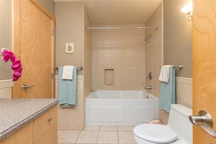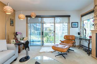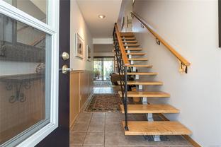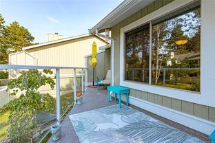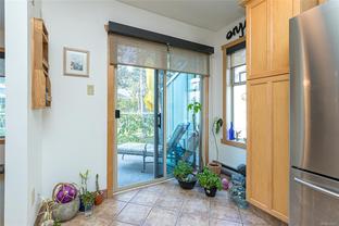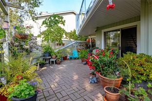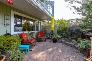 This highly sought-after, end-unit townhouse is sure to impress, offering 1769 SQ FT w/3 BRs, 2 BA’s, a DBL car garage, and custom staircase, wood & metal work throughout. This unit boasts a stunning end-to-end patio & an fully updated kitchen with a skylight that is open to the dining area. The living room features a two-sided gas fireplace for cozy winter evenings & is also open to the dining area. The spacious MSTR BR includes a fully updated 4 PC ensuite & the 2nd BR on the upper level is currently used as an office with built-ins but is an easy conversion back to a BR. Lower level offers another large BR with a three-piece ensuite & a flex space that opens onto a private, spacious patio & gardens. This unit provides ample storage, a full size laundry area all allowing for downsizing without compromise. Enjoy the convenience of being a minute's walk from the marina, waterfront, beaches, & public tennis courts, all while remaining within walking distance of the amenities of beautiful Sidney By The Sea. Proudly presented by The Ann Watley Group, Ann Watley Personal Real Estate Corporation & Chad Tuggle, Pemberton Holmes Ltd.