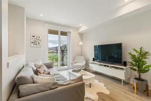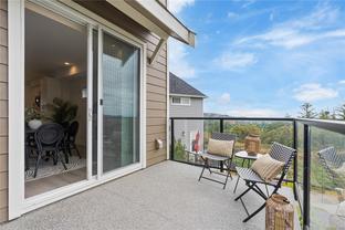 Welcome to 1161 Moonstone Loop in Bear Mountain’s South Point community! This bright 2 Bed, 3 Bath END UNIT townhouse offers stunning mountain views and a flexible, open-concept layout. The chef-inspired kitchen features stainless steel appliances, two-tone cabinetry, and a spacious island. The living and dining areas can be arranged to suit your lifestyle—dine by the fireplace or relax and enjoy the view. Upstairs, a bright skylight adds natural light, and the primary suite offers oversized closets and a spa-like ensuite with radiant floor heating and a glass shower. The second bedroom also includes its own ensuite, and a full laundry room is conveniently located upstairs near both bedrooms. Enjoy two private balconies and a low-maintenance backyard. The tandem double garage provides parking, storage, or space for a gym/office with its own entrance. Just one minute to the highway for a quick Victoria commute!