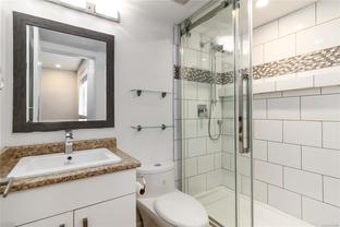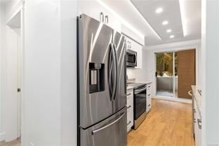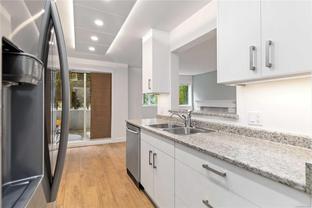 Welcome to this beautifully updated 2 bedroom, 2 bathroom ground-level suite, thoughtfully renovated in 2019. The home features a modern kitchen with stainless steel appliances, laminate counters, laminate floors, custom lighting, updated bathrooms, and neutral paint throughout. The spacious layout includes a bright living room with a cozy gas fireplace, a dining area, and a breakfast nook off the kitchen. The primary bedroom offers a full ensuite and walk-in closet, complemented by in-suite laundry and a storage room. A quiet and private patio provides a relaxing outdoor retreat. Secure underground parking is included, and pets and rentals are welcome, making this an ideal option for investors or first-time buyers. Perfectly located just minutes to downtown Victoria, UVic, and Camosun College, with schools, transit, and the Galloping Goose Trail nearby, this home offers excellent value, comfort, and convenience in a desirable community.