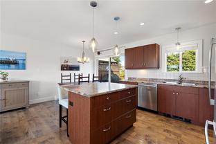 Move-in ready and extensively renovated, this bright and clean home is located on a quiet no-thru street just a short stroll to all of the charming shops, cafes, parks & amenities of beautiful downtown "Sidney by the Sea". Upstairs offers a spacious 2-bed, 2-bath layout with a large open-concept living area, kitchen with island, stainless appliances, and access to a generous deck overlooking the fully fenced yard. Downstairs features a self-contained 2-bed suite with private entry, laundry, and patio—ideal for extended family or rental income. Renovations include new roof, windows, plumbing, perimeter drains, engineered beam to replace wall, soundproofing with rez bar between floors, and all new electrical including 200 amp with sub panel for main/suite—all done with permits. A rare Sidney find! See media links for more!