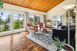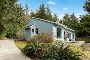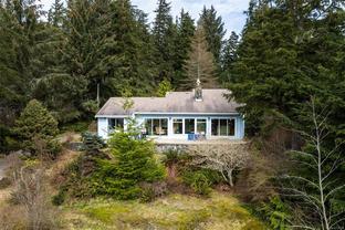 OCEAN & OLYMPIC MTN VIEWS! Inspired 3 bed, 2 bath, 2032sf rancher w/bsmt on a sunny, sw-facing, beautifully treed & landscaped .98ac/42,689sf lot w/trails meandering thru the forest, fenced gardens & stream w/waterfall. Step thru the front door to the cathedral entry w/slate floors. Your gaze will be drawn to the uplifting views & gleaming oak floors awash in light thru a profusion of windows, enhanced by airy 17' vaulted ceilings. Living rm w/floor-ceiling granite fireplace opens thru sliders to the 569sf front view patio. Kitchen w/updated appliances & plenty of cabinetry/counter space + pantry. Dining rm w/Jotul woodstove is ideal for family dinners + bkfast nook w/forest views. 3 bedrooms incl primary w/walk-in closet & 4pc ensuite. 4pc main bath & laundry/mud rm. Down: large family rm & crawlspace for storage. BONUS: can be purchased furnished for turnkey move-in or rental! DBL garage/lots of parking. Live where the wilderness meets the sea & enjoy the finest in West Coast living!
