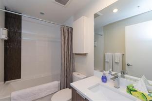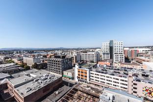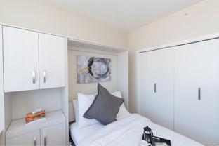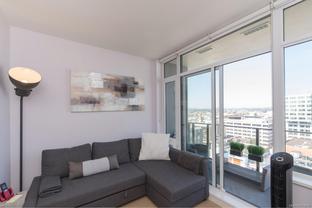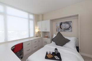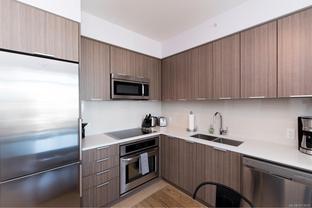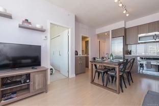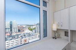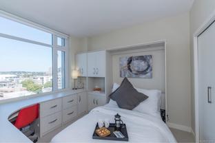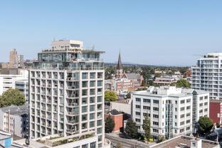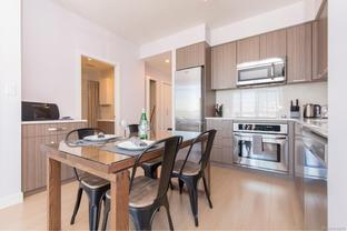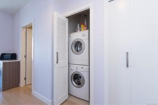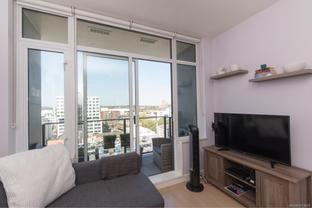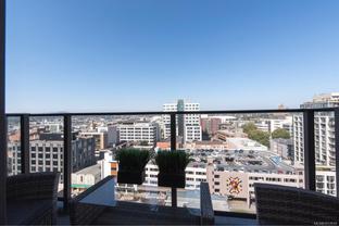 Ready to Move into This stylish and modern 14th-floor unit? Boasts breathtaking views of downtown Victoria and glimpses of the water. The price includes existing furniture,kitchen table, four chairs, Tv stand, Couch, patio furnitures and bedroom builtins. Thoughtfully designed built-ins add both elegance and functionality. Enjoy a perfect Walk Score of 100, one (1) secured underground parking stall, and one (1) storage locker. Entertain guests in the shared rooftop space or amenities room plus secured bathroom biker locker. Don't miss this exceptional opportunity!