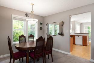 Priced below assessment! Seldom does a home in this quiet, private cul-de-sac become available. One of just six single-family residences, this property offers the ease of one-level living, a no-step entry from the garage for easy accessibility, and a welcoming sense of space and light in a lovely, low-maintenance setting. Inside, you’ll find over 1,640 sq. ft. of bright, thoughtfully designed living space. Vaulted ceilings, expansive windows, and a heat pump for year-round comfort create an airy, light-filled atmosphere. The layout includes two bedrooms plus an oversized den that easily serves as a third bedroom, along with two full bathrooms. A formal living room with a charming fireplace and mantel offers a cozy retreat, while the adjoining dining room is ideal for hosting dinners. At the heart of the home, the open-concept kitchen, family room, and eating nook form a bright, inviting space perfect for everyday living and entertaining, with easy access to the backyard. Step outside to your own private oasis featuring a flat, lush lawn, stylish brick patio, and effortless low-maintenance landscaping, perfect for gatherings or peaceful relaxation. This home also boasts a new roof, single garage with a generous storage room plus a second full-size parking stall, giving you space and convenience in one package. All this, just a distance to Royal Oak Plaza for shopping, dining, and daily conveniences, with beautiful hiking trails right across the street. A rare chance to enjoy a carefree lifestyle in a peaceful and sought-after setting.