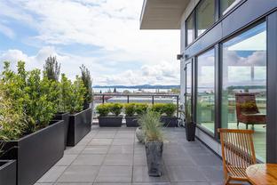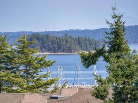 OPEN SUN / OCT 19 FROM: 1-2:30PM. Ideally located just steps away from Vibrant Downtown Sidney & the 2.5 Km Waterfront Walkway. The coveted CAMEO PENTHOUSE occupying the South / West / East sides of the Building has been tastefully updated and shows better than new with Spectacular Views in all directions, boasting almost 2,500 sq ft of luxury living space on ONE LEVEL + 3 big decks for outdoor living, soaring 14' ceilings, huge windows, power blinds, sleek and modern designed kitchen is complemented by top-of-the-line fixtures and finishes featuring Fisher & Paykel appliances, Heat Pump / Air Conditioning, wide plank flooring and 2 parking spaces with EV charging. For those Discriminating Buyers who insist on having the best this trophy property delivers, truly a rare and Spectacular Residence that is sure to impress.