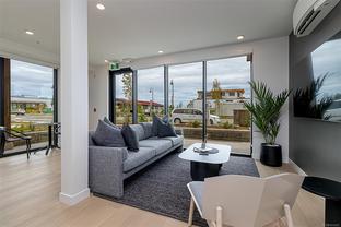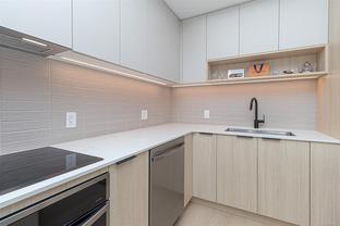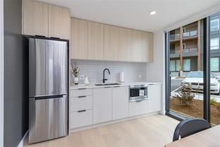 Brand New, GST Included: Seaside living with this 1 bedroom + den home at ELIZA. Just steps from the ocean and walking distance to shops, restaurants, and groceries, convenience is truly at your door. Inside, modern design blends with luxury finishes: CAD 6 construction, smart appliances, quartz island, custom cabinetry, A/C with heat pump, and 9’ ceilings. The spa-inspired ensuite and walk-in closet add comfort, while in-suite laundry and a storage locker provide everyday ease. Enjoy mountain views from your private space or gather with friends on the rooftop patio, designed to take full advantage of the setting. Residents benefit from a fully equipped gym, built-in dog wash station, and a welcoming pet policy for dogs of all sizes. This home also includes a large parking stall next to the elevator, roughed in for EV charging—perfect for today and ready for tomorrow. ELIZA offers the rare opportunity to combine oceanside living with contemporary comfort in a vibrant community.