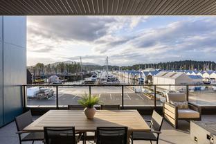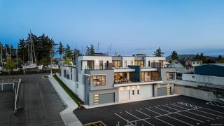 Experience Coastal Elegance at the Sea Dweller, a rare oceanfront masterpiece located in the new Harbour Haven Development. This exquisite 4-bed, 5-bath residence spans 3,202 sq.ft of impeccably designed living space, offering breathtaking views of the marina & coastline. Discover an open-concept layout enhanced by 10-foot ceilings, floor-to-ceiling windows, skylights, gas fireplace, & wide-plank hardwood flooring. The chef-inspired kitchen features custom millwork, quartz countertops, & top-of-the-line SS appliances. This home offers the ultimate in comfort & privacy w/ two lavish primary suites, each boasting spa-like ensuites. Three expansive balconies invite seamless indoor-outdoor living—perfect for entertaining or simply savoring the panoramic vistas & ideal sun exposure. Additional features include a double garage, private elevator, & a 1-bed, 1-bath suite. Located just steps from the marina, beaches, restaurants & Sidney by the Sea.