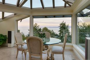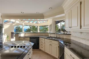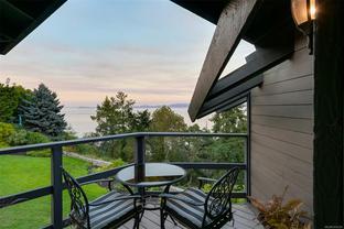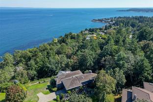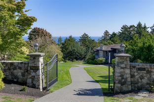 Privately set behind gates on one of the most exclusive lots in Wedgewood’s Ten Mile Point, this custom-built 1984 home sits on over half an acre, backing onto Phyllis Park with ocean views. The main living area features vaulted ceilings and oversized windows that capture natural light and treed privacy, while the kitchen connects to a sun-filled solarium with gorgeous views. A dedicated dining room is perfect for entertaining with direct access to the deck. The primary suite offers a private deck, fireplace, walk-in closet, and ensuite, with two additional bedrooms, full bath, and laundry completing the upper level. The main floor includes a private office with deck and powder room, and the lower level boasts a spacious recreation room with walkout, additional bedroom, and sauna. A two-car garage, ample storage, and unfinished space perfect for a suite, office, or studio add flexibility. A rare opportunity to personalize a home in one of Victoria’s most prestigious neighbourhoods.