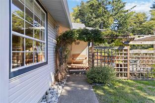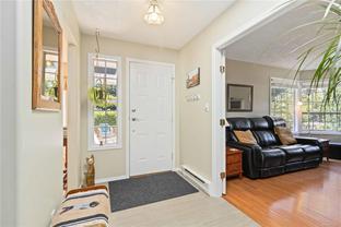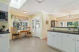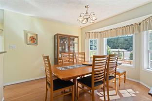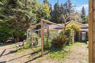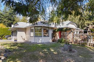 Welcome to 2161 Henlyn Rd, a bright and inviting 3 bedroom, 2 bathroom rancher on a private .38 acre lot. Offering 1421 sqft of comfortable one level living, this home features a skylit entry, spacious living room with a large bay window, and a cozy woodstove that adds warmth and charm. The light filled kitchen, complete with a charming breakfast nook, and adjoining dining area create the perfect space for everyday living and entertaining. The primary suite includes a walk in closet and 4 piece ensuite, both bathrooms have been beautifully updated. Engineered hardwood floors add style and durability. The landscaped yard is low maintenance yet feels like a retreat, with roses, mature grapes, kiwi, a large strawberry patch, and a peaceful creek as your backdrop. Complete with a two car garage, this home is tucked away in a quiet rural setting just minutes to Sooke town centre, schools, shopping and Ella Beach. An ideal choice for downsizers or anyone seeking the ease of one level living.