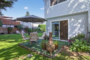 Welcome to this charming and well-kept half duplex nestled in Langford’s sought-after Goldstream neighborhood. Tenanted for over 25 years and lovingly cared for like it was their own. BOTH SIDES OF THIS DUPLEX ARE CURRENTLY FOR SALE. Main floor features a formal living room with a cozy gas fireplace and kitchen with a generous dining area, perfect for hosting family dinners or entertaining guests. From the kitchen, walk out to a private patio surrounded by lush gardens, ideal for relaxing or enjoying your morning coffee. Laundry room and a full 3-piece bathroom round out the main level. Upstairs, you’ll find three roomy bedrooms, including a large primary with its own ensuite, plus a full 4-piece bathroom for the rest of the family. The single-car garage offers convenience, and the beautifully landscaped yard adds curb appeal and tranquility. Tucked away at the end of a quiet cul-de-sac, this home offers direct pathway access to Willway Elementary, perfect for families with young kids.