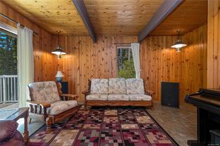 Escape to a private, serene 2-acre retreat, offering exceptional subdivision potential with 2 road frontages. This unique Lindal Cedar home welcomes you with a stunning, 2-story vaulted living room featuring a cozy rock fireplace & expansive windows that frame beautiful forest views. The main level has a classic kitchen & dining area, both with doors leading to a spacious, wrap-around sundeck. Inside, enjoy natural beauty with tongue-and-groove pine walls, ceilings, & exposed wooden beams. The durable metal roof offers lasting protection. Upstairs, 2 vaulted bedrooms offer tranquil forest views. The home also includes a convenient garage & a partially finished basement with a 3rd bedroom & roughed-in bathroom for the inlaws? Enjoy a lifestyle surrounded by nature with nearby parks, golf, & waterfront access. Located just 6 minutes from Swartz Bay Ferry Terminal, 10 minutes to Sidney, & 35 minutes to Victoria, this is a rare opportunity to own a peaceful haven with incredible potential.