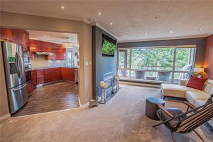 Discover an executive penthouse nestled in the forest, perfect for those seeking a harmonious blend of West Coast charm and European sophistication. Experience an executive penthouse in the forest that seamlessly blends West Coast charm with European sophistication. This exceptional unit boasts stunning ocean and mountain views, featuring a unique interior with high-end renovations. Enjoy a custom walk-in closet, a kitchen with Italian neolith and quartz countertops, a high-end Murphy bed/office set, and pot lights throughout. Electric skylights provide a refreshing breeze, while luxury appliances, Italian ceramic floors, and silk blend carpets add modern elegance. Greet local eagles soaring by as you dine. New roof. Convenient trails and amenities are around the corner—schedule your showing today!