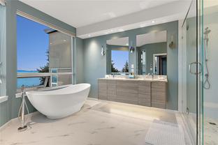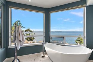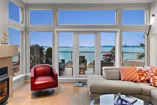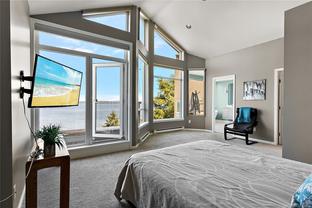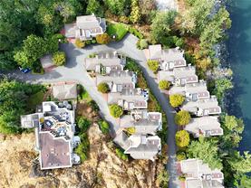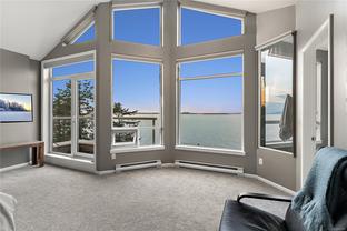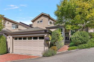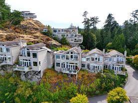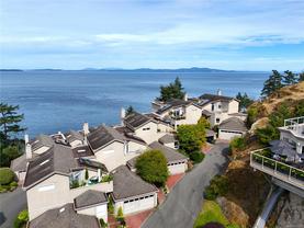 STUNNING, extremely private and super bright 3-bedroom (or 2-bedroom plus den) two-level townhome in the exclusive Seascape oceanfront community offering georgeous 180-degree views of Haro Strait, islands, and Mount Baker from almost every window, featuring gleaming maple floors, three brand new luxuriously finished bathrooms, fresh paint throughout, new carpeting in bedrooms, several skylights, and an elegantly refinished fireplace in the livingroom. 9-foot ceilings downstairs and dramatic ceiling vaults upstairs for an airy elegant feel. Everything is excelptionally clean and extremely well maintain with updated appliances and tasteful light fixtures adding contemporary charm. Enjoy two spacious decks and the private common area stairway to miles of beach at low tide. 20 minutes from the airport, 15 to downtown, and 10 to top-tier shopping, cycling, and golf, this meticulously maintained home with an attached double garage offers timeless luxury in a breathtaking waterfront setting.