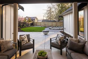 OH SUN 12PM-1:30PM - Stunning 4-bed, 3-bath rancher situated on a scenic 0.25-acre lot with exceptional sun exposure in the desirable Pat Bay neighbourhood. This immaculate single-level home offers a spacious open-concept layout with the finest finishes. The modern Cape Cod design is complemented by large windows,16ft vaulted ceilings, and wide-plank hardwood floors throughout. The gourmet kitchen features shaker cabinetry, soft-close doors, premium appliances, quartz countertops, an oversized island, and a walk-in pantry. Retreat to the luxurious master suite with a 5-piece ensuite and walk-in closet. Outside, enjoy an expansive west facing patio space, ideal for entertaining or relaxing in the tranquil surroundings. Additional conveniences include an oversized double-car garage, radiant in-floor heating, a heat pump with A/C, and a partially covered rear patio to further enhance the appeal. Built without compromise.