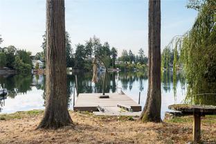 Escape to the lake with this rare opportunity. Nestled on the coveted side of Langford Lake w/ south-facing exposure at the end of a quiet cul-de-sac, this exceptional 5BED,3BATH home(including 2ED suite)offers 3,367 sqft of living space on an 11,630 sqft lot. Enjoy direct water access from the landscaped, 3-tiered backyard—complete w/irrigation, storage cabana for your water toys & private, updated dock where you can swim, paddle, or take in breathtaking sunsets. Inside, the main level features a cozy living room w/wood-burning fireplace, a bright kitchen w SS appliances, ample counter space & cabinetry & eating area that opens to patio w/ seamless glass railings—perfect for morning coffee. Retreat to the spacious upper-level primary suite (427 sqft) w/walk-in closet, sitting area, private balcony & ensuite bathroom. Two additional bedrooms, a flexible rec room complete the home, while the spacious 2BED suite w/shared laundry provides flexibility for extended family or rental income.
