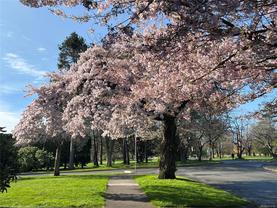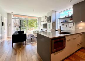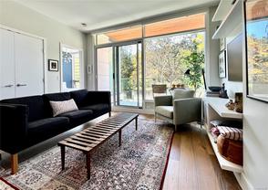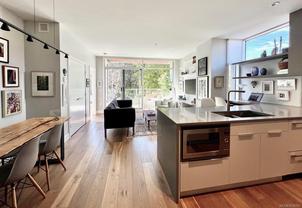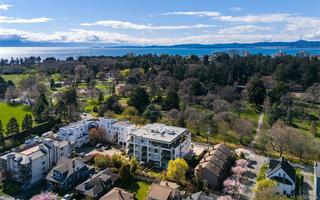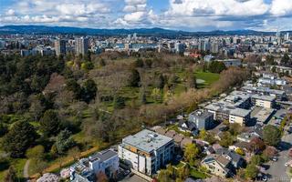 In what must be one of the best locations in Victoria, this beautifully appointed 2 bed, 2 bath corner unit in a luxury boutique building offers stunning unobstructed views of Beacon Hill Park from all rooms and a glorious west-facing balcony. In this nearly new, architect-designed concrete and steel building, the condo offers a modern open concept layout. The chef's kitchen features high end Fisher & Paykel appliances, quartz counters, full height cabinets, a handy office nook and pantry with custom built-ins. Primary bedroom features a smartly configured walk-through closet and a stunning ensuite with heated floors. Electric blinds, gleaming hardwood floors throughout complete the package. The superb location is steps to Cook St, downtown, and the ocean vistas and trails of Dallas Rd. Enjoy the park's wild meadows, manicured gardens, centuries-old oaks, and diverse wildlife. This is a well managed, dog/pet friendly bldg with secure underground parking. A perfect condo and must see.