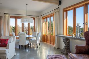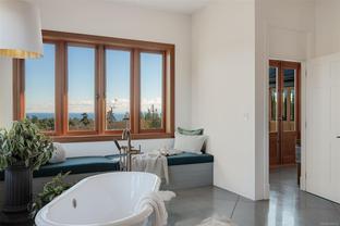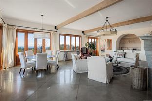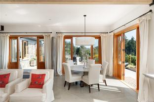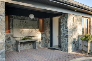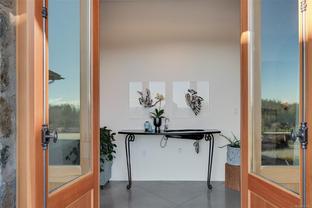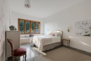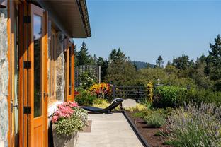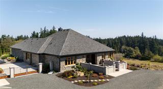 Metchosin Artistic Treasure. This outstanding 4,000+ sq ft one-level home is fashioned to withstand the passage of time. The imposing granite exterior with wrought iron embellishment & concrete water feature heralds the quality & distinctiveness of the interior of this French provincial inspired residence. Polished concrete floors, exposed beams, in-laid wood feature floors & reclaimed brick accents make it warm & inviting with refreshing originality & artistic flourish rarely seen in new builds. The spacious great room boasts a magnificent bespoke fireplace & multiple custom French doors give access to the patio. A sep. prep area is a feature of the well-laid out kitchen. The primary retreat will satisfy any discerning buyer. Geo-thermal heating reduces the carbon footprint. An auxiliary building includes a 1,380 sq ft art studio w/ bathroom, workshop & garage. Nestled in the rolling hillside, on 2.4 acres with views across Haro Strait to the Olympic mountains